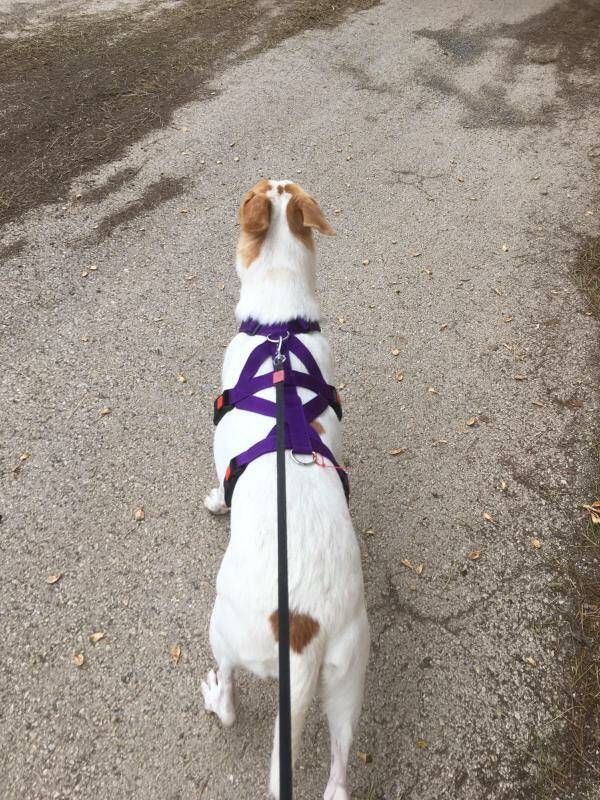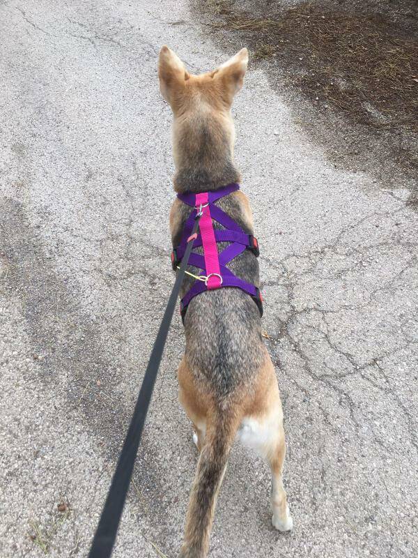 Voor 5 euro extra naai ik een tussenstukje met ring aan het borststuk zodat je hond minder zal trekken. Wanneer de hond namelijk trekt zal hij zichzelf automatisch uit onbalans trekken.