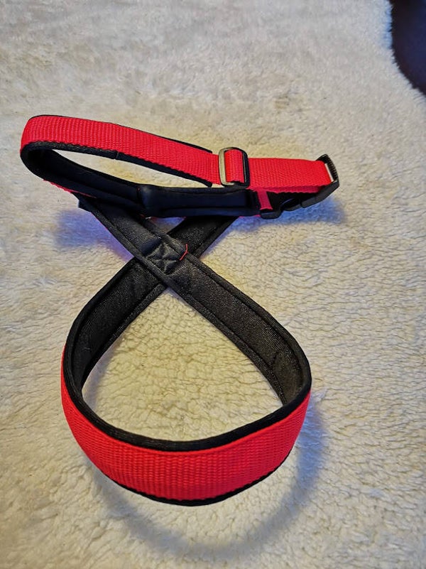 Dit tuig is super simpel om te doen en toch heel erg ontsnappingsveilig. Iets minder geschikt voor honden die heel hard trekken, omdat de band dicht bij het middenrif zit.