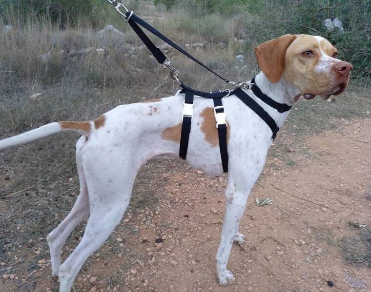 Twee riemen vasthouden (en je hebt ook nog altijd te maken met twee verschillende lengtes wanneer de ene lijn aan de hals en de ander aan het tuig vastzit) . Wanneer een hond dan gaat draaien zit alles in de knoop. Vrijwilligers waren dan wanhopig bezig de boel uit de war te halen en soms moesten ze daarbij over de hond heen stappen en riemen van de ene in de andere hand overpakken..etc..en soms meer gefocust op de riemen dan op de dieren. De honden schrokken zich rot!!